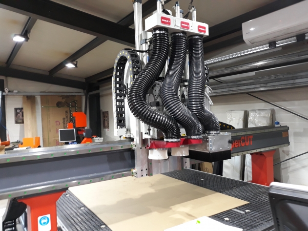 Tri galve : 2 x rezklana 4,5 kW in ena žaga za vdolžno in prečno rezanje