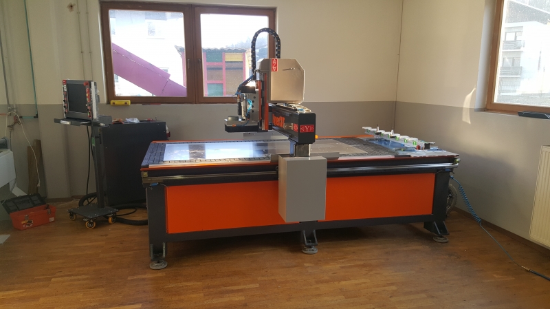 Stroj lahko naredimo v različnih dimenzijah (2*4, 2*6, 2*7 m), dodamo mu lahko še eno obdelovalno glavo ali sistem za rezanje kartona, pene,... Stroj ima avtomatski sistem menjave orodij. Možnost dograditve v 5-osni stroj.